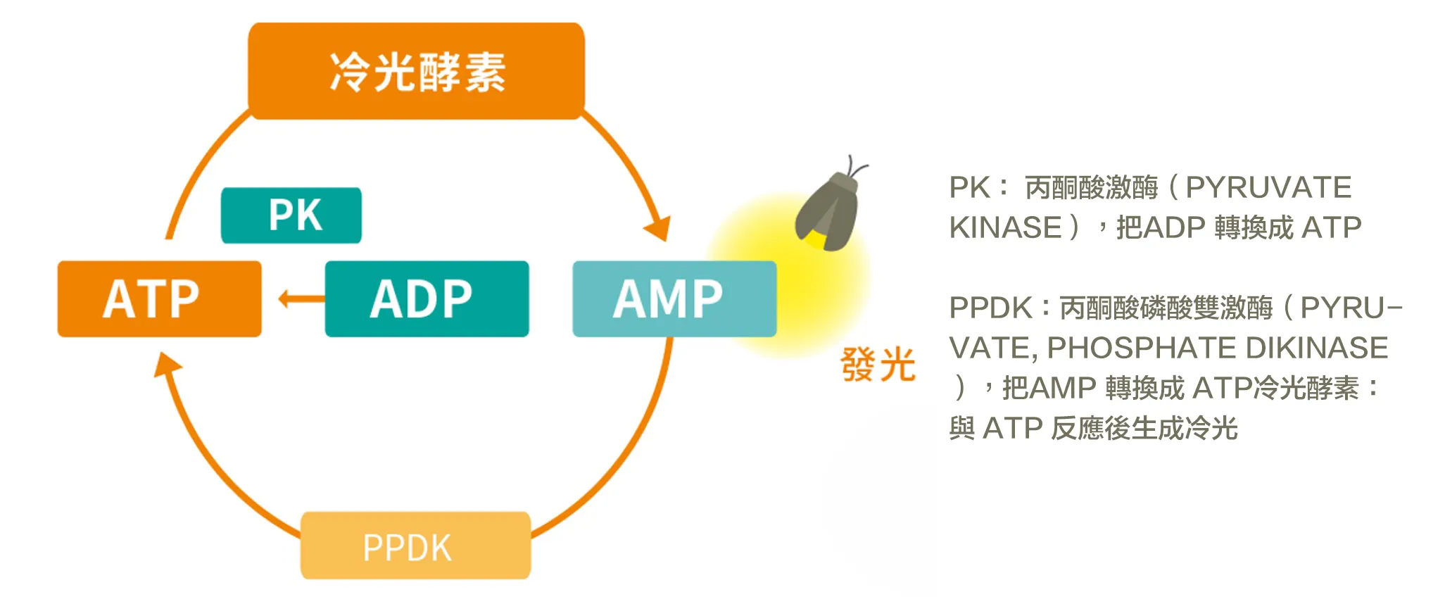 A3 法透過專利 PPDK(丙酮酸磷酸雙激酶) 與 PK(丙酮酸激酶) 的雙重酵素反應,將殘留中的 ADP 與 AMP 轉化為 ATP,進而進行同步能量偵測,使評估結果更貼近實際可被微生物利用的殘留狀態。