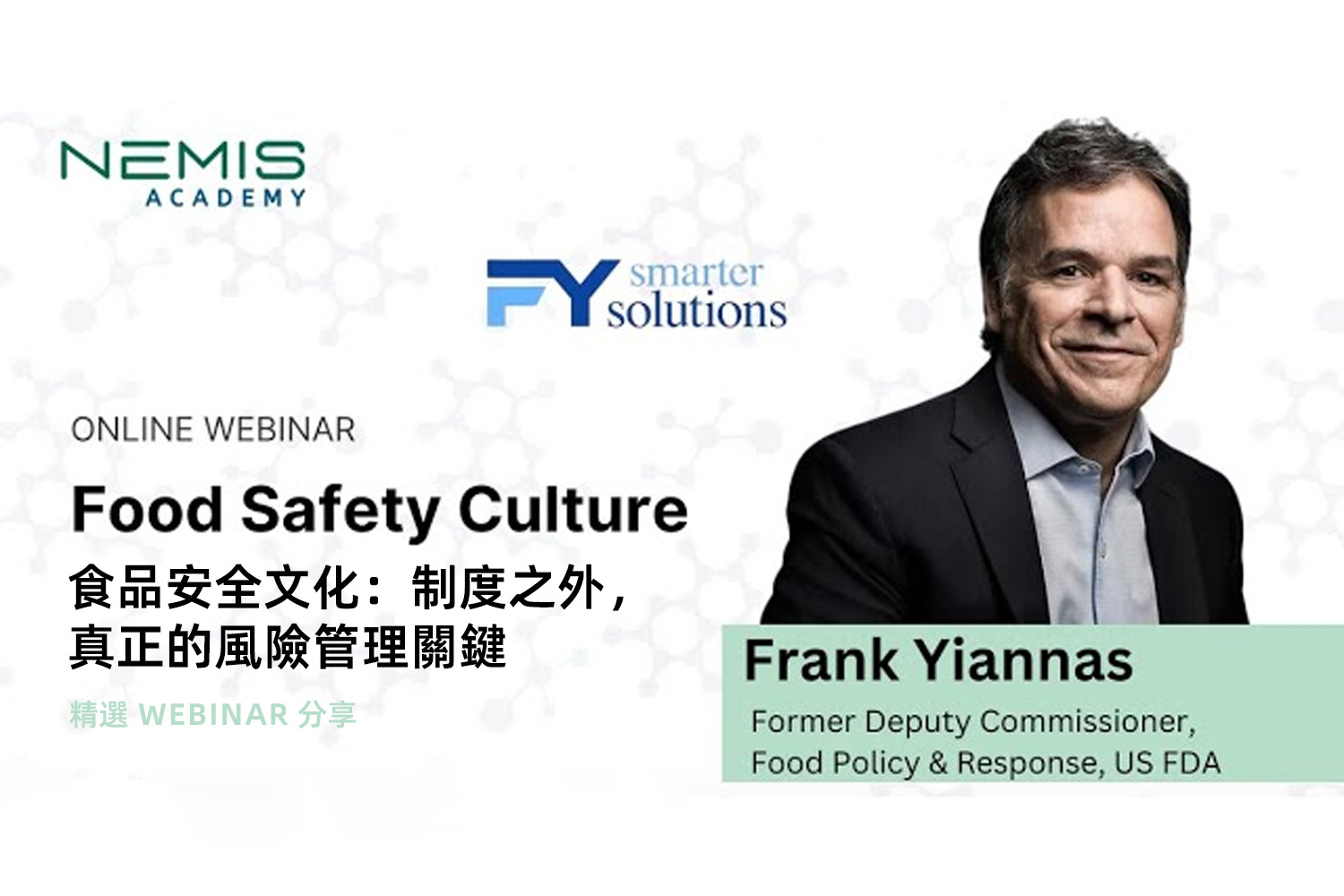 本次 Webinar 特別邀請到前美國 FDA 食品安全副局長